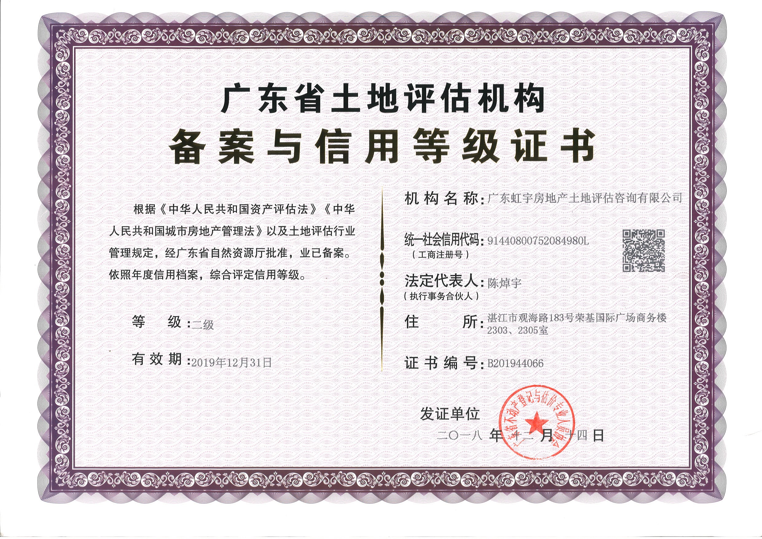 廣東省土地評估機構備案與信用等級證書(shū)